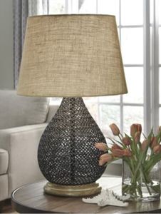 Aimon Metal Table Lamp in Bronze L207064A pleasing pear shape and mix of organic-feel materials give the Aimon table lamp so much appeal. Open weave metal really lightens things up.Bronzed Finished Metal and Wood Table Lamp. Hardback Shade. 3-Way Switch. Type A Bulb - 150 Watts max or 25 Watts Max CFL.Read More