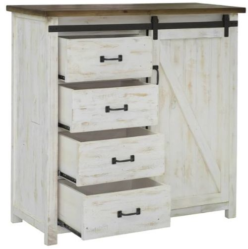 This item embodies natural rustic charm. This collection features an antique white finish on reclaimed pine wood, farmhouse gliding doors and lots of room for storage!Read More