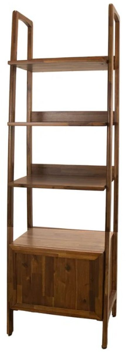 4 shelves of open storage, as well as 1 cupboard