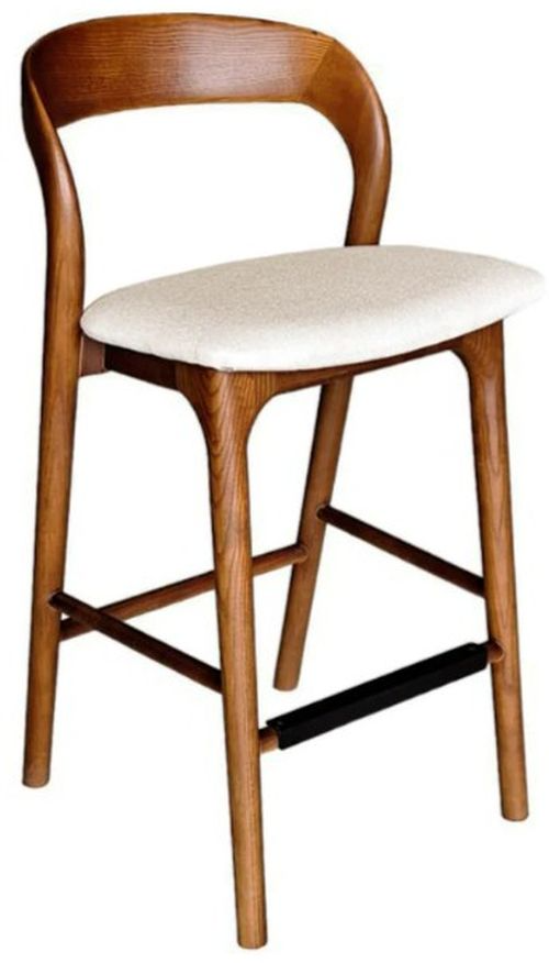 This Counter Stool, crafted from a solid ash wood frame, featuring a seat cushion upholstered in 100% polyester fabric. The stool offers both comfort and durability, making it a perfect addition to any dining space. A black metal bar in the footrest enhances durability and protects against wood scratches, ensuring lasting quality.Read More