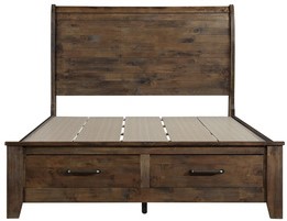 Metal hardware furthers the authentic rustic look of the Eastern King platform storage bed while a burnished finish serves to highlight the wood grain while allowing each plank to serve as a unique accent to the design. The drawers of the footboard allow for extra storage space within your bedroom.Read More
