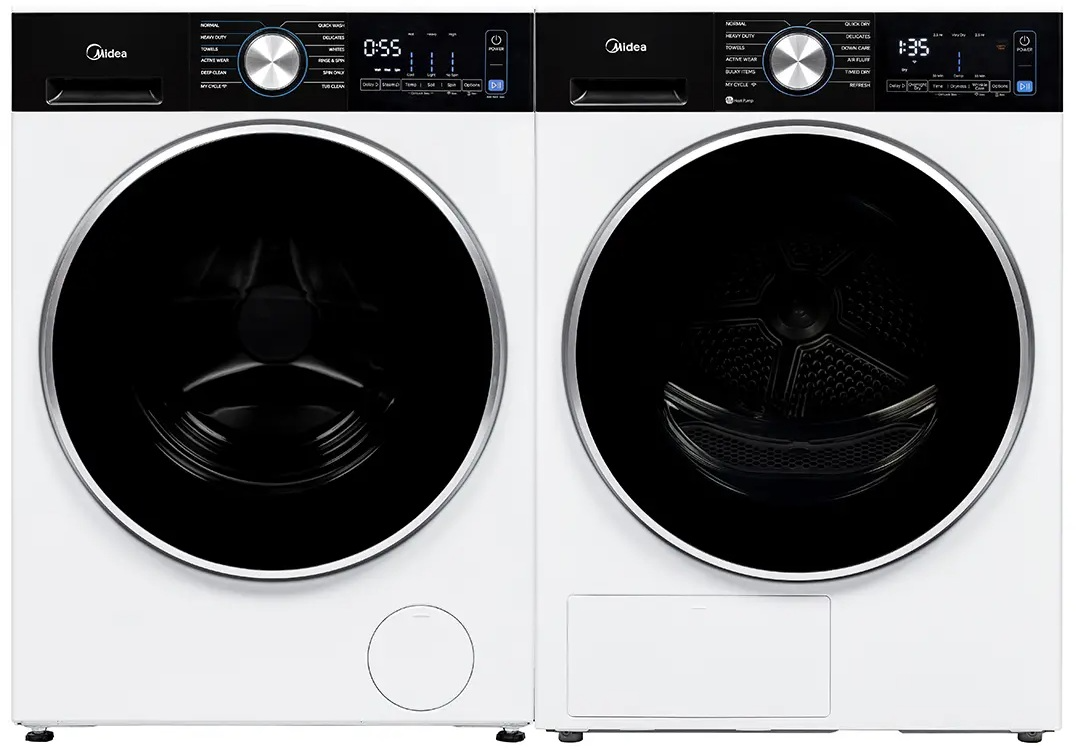 Midea white front load laundry pair with a 3.1 Cu. Ft. White Front load Compact Washing Machine and a 4.4 Cu. Ft. White Ventless Electric DryerRead More