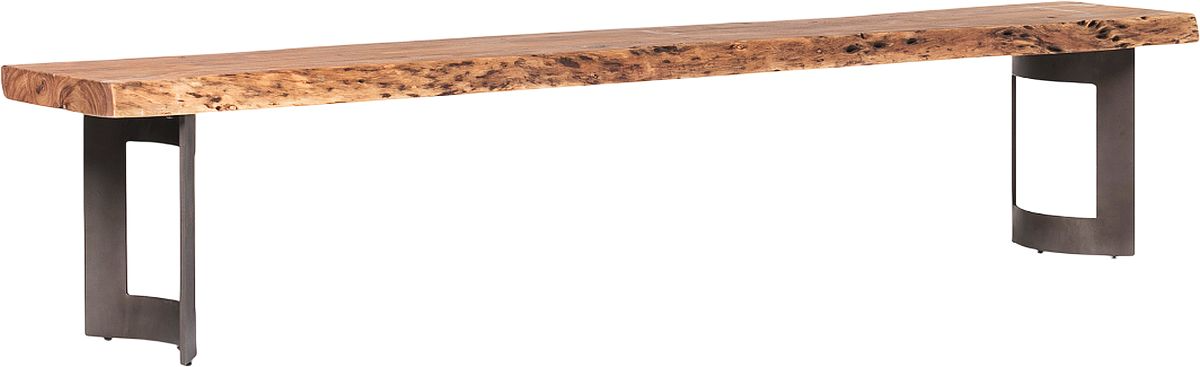 Made of beautiful solid acacia wood, rustic live edge detailing shows off the unique knots and whorls of the wood. With simple steel legs that serve to display the natural quality of the acacia wood, the Bent Bench is the perfect way to add extra seating to your dining table.Read More