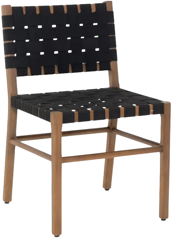 The Mira outdoor dining chair features a solid teak frame intricately adorned with contemporary webbing-strap detail, adding captivating textural interest. Its alluring woven design lends an air of openness and intricate detail to any setting.Read More