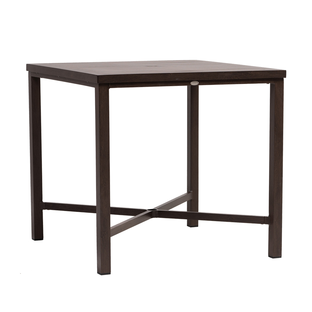 The Coconut Grove square counter table features a powder coated aluminum frame with hand-brushed finish supported by square tapered legs.Read More