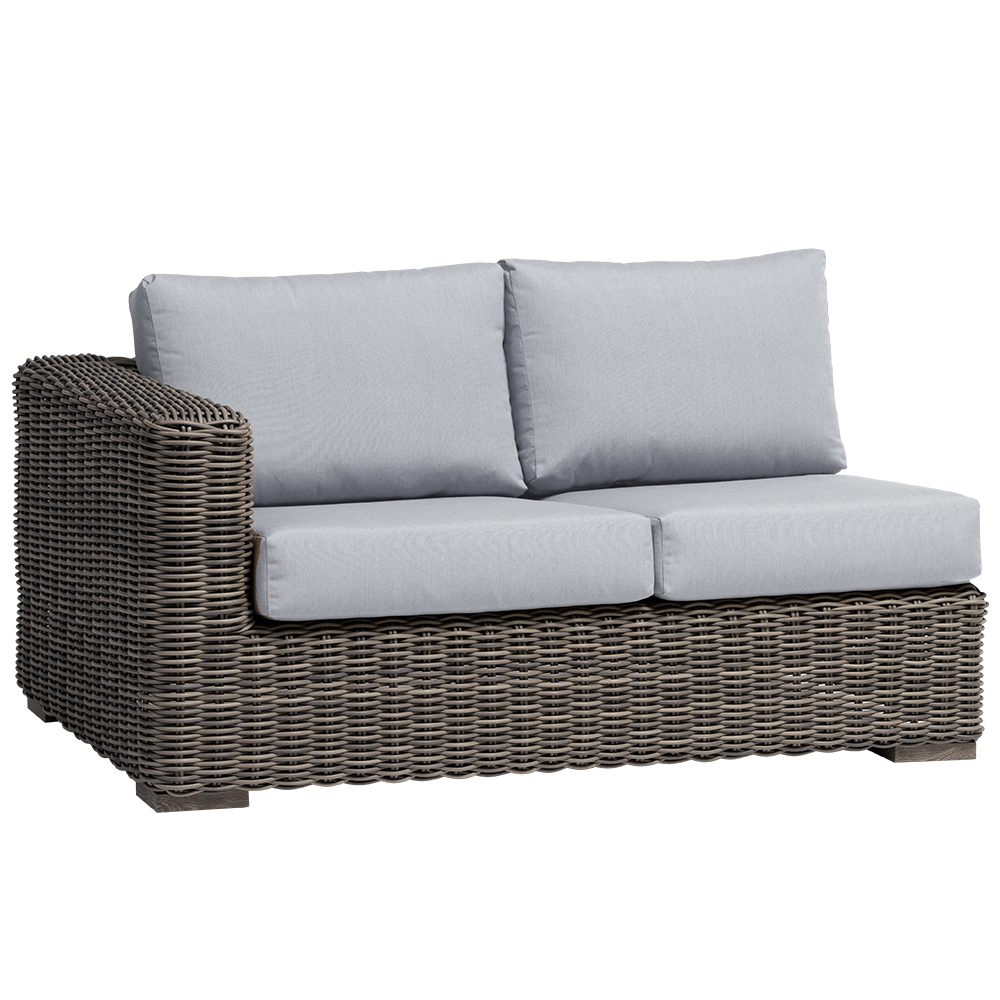 The Coconut Grove 2-seater left arm features wood grain finished aluminum legs. Slanted back and seat panel dropping inwards to offer great comfort.Read More