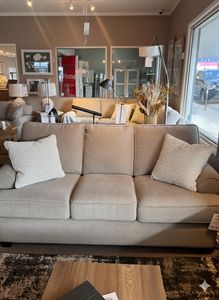 Additional Dimensions Arm Height: 26" Seat Depth: 22" Seat Height: 18.5" Pillows 20" x 20" pillows Blown dacron fiber filled Your choice of fabric cover With self-welt Zipper Features Sinuous spring construction 1.9 lb. Standard Seat Foam. Option of Firm T-box seat cushions with self-welt Leg type: 3" square - wood The Sofa - Fraser Pewter by Decor-Rest Furniture Ltd. may be available at Wendells Furniture in the Colchester area. Please contact us to check availability.Read More