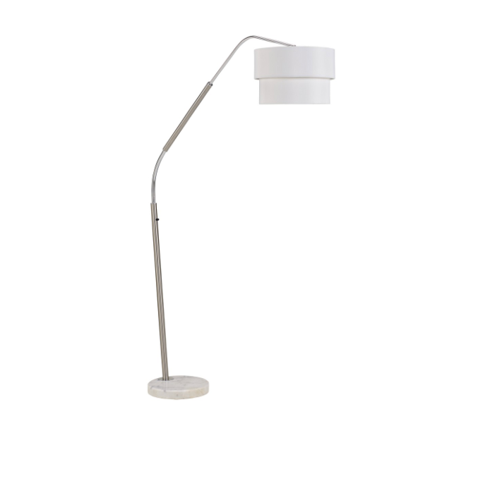 Brushed Silver Metal And Marble Base Arc Lamp. Layered Drum Shade 17" X 15" X 11". Adjustable Neck. Dimmer Switch. Type A Light Bulb 100 Watts Max Or Cfl 26 Watts Max. Shipped 1 Per Carton.Read More